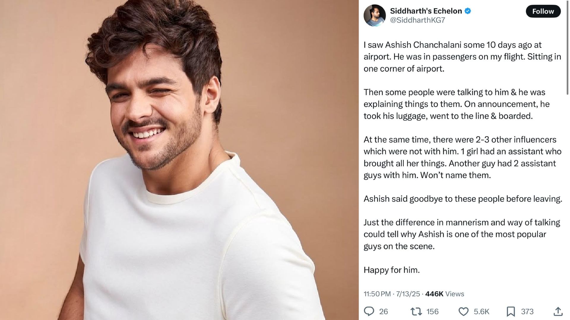 Recently, Siddharth’s Echelon, a popular podcaster known as @SiddharthKG7, shared his thoughts on Ashish Chanchlani’s humility and why he believes Ashish is one of the “most popular guys” in the scene on his X account.