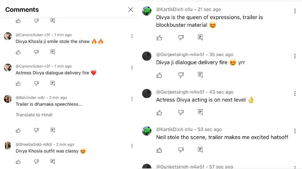 Since its release, the trailer of Ek Chatur Naar has taken the internet by storm, with fans praising Divya Khossla’s commanding screen presence and the film’s promise of unlimited comedy packed with thrilling twists. Social media is abuzz with reactions like “Full paisa vasool,” “Dialogue delivery on fire,” and “Khossla nailed it,” while also celebrating Neil Nitin Mukesh’s return and Umesh Shukla’s refreshing spin on the comedy-thriller genre. Audiences are especially drawn to the quirky characters and gripping storyline, leaving them eager to watch this chatur game unfold on the big screen.