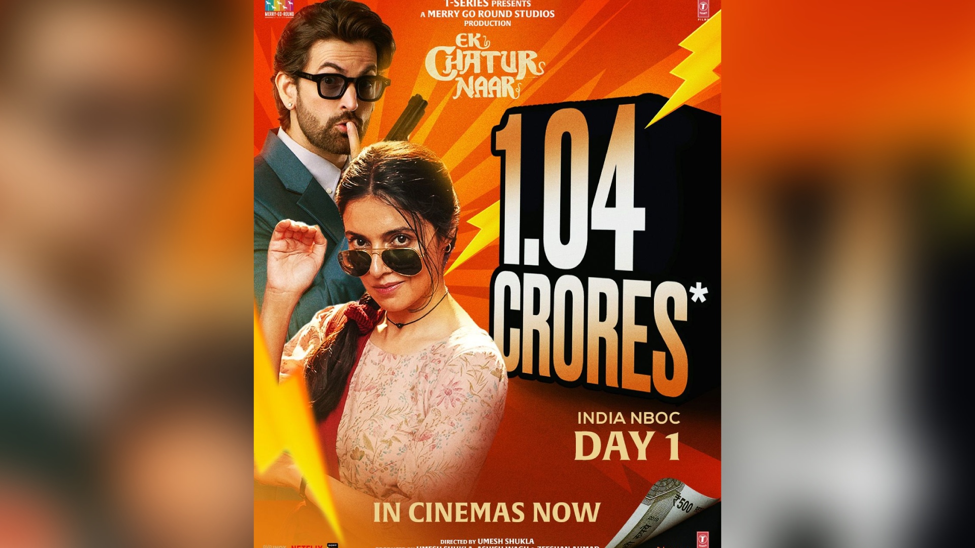 Marking a promising start, Ek Chatur Naar has struck the right chord with audiences on Day 1, collecting ₹1.04 crore India NBOC. The film’s quirky storyline and engaging dark comedy are drawing viewers to cinemas, with positive word of mouth setting the stage for a steady run ahead.