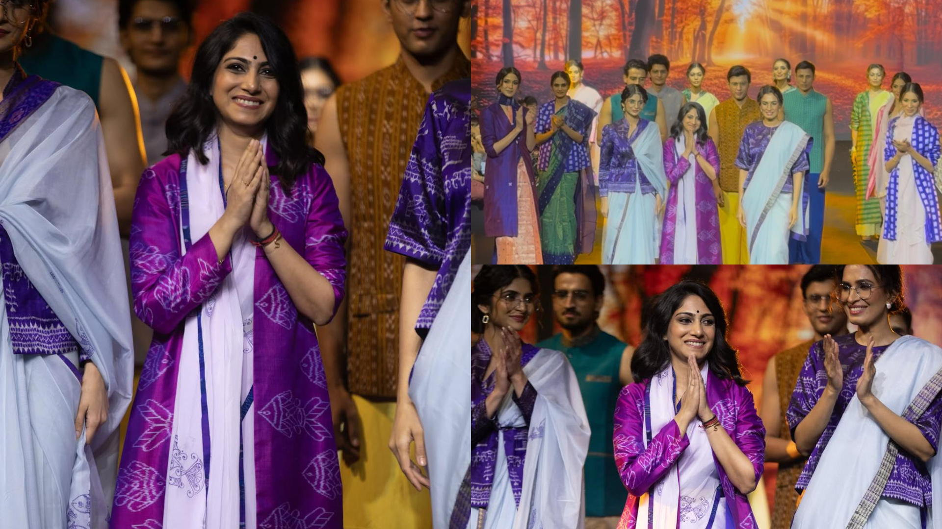 The highlight of the collection is the use of fine organza drapes adorned with delicate Pattachitra hand-painting, bringing Odisha’s ancient art to life through soft pastel and earthy tones. Each ensemble is meticulously shaped by master weavers, karigars and artists who worked tirelessly to perfect every thread, every brushstroke and every silhouette.