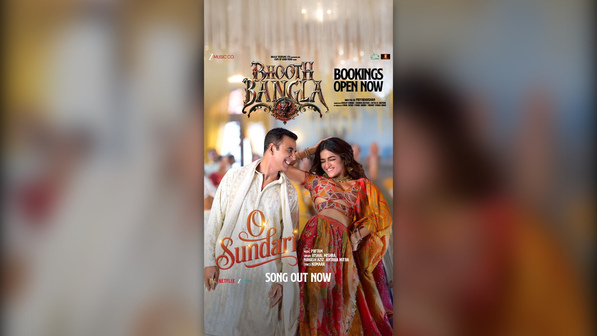 O Sundari from Bhooth Bangla is here, and it will definitely add fun to family celebrations. While Mithila Palkar looks absolutely graceful in her bridal outfit, Akshay Kumar and Wamiqa Gabbi are truly setting the stage on fire with their dance moves. The song captures the beautiful brother-sister bond between Akshay and Mithila. After a long time, such a visually rich and amazing family celebratory song has arrived. While the film explores the horror-comedy genre, the song adds a distinct flavour to it.